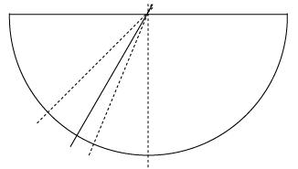 ケーキ屋さんなんかだったら、まずホールケーキを半分に切って、半月状態になったケーキの半分の半分(つまり4分の1)をイメージして、それのちょっと内側を切る。そして残りを半分に切るというようにしているようです。下の図のような感じです。